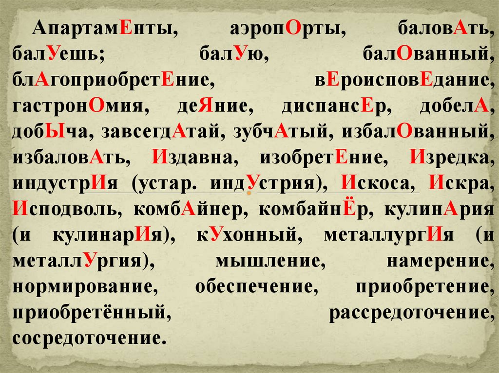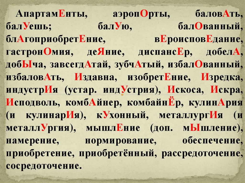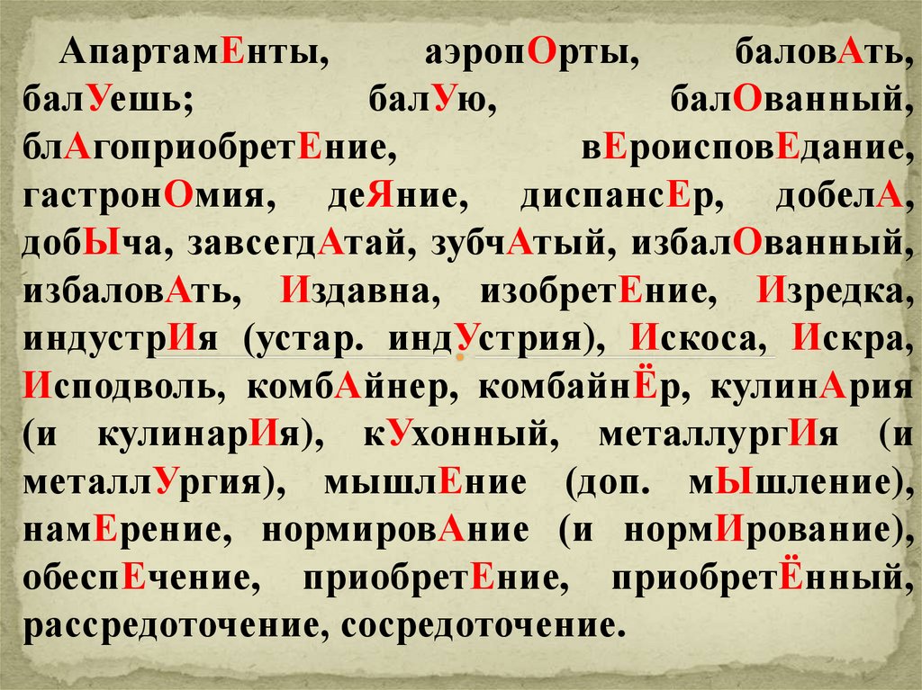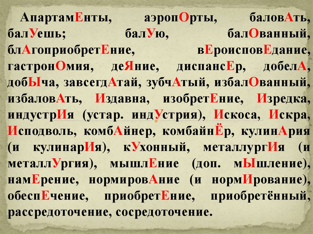 АпартамЕнты, аэропОрты, баловать, балуешь;балую,