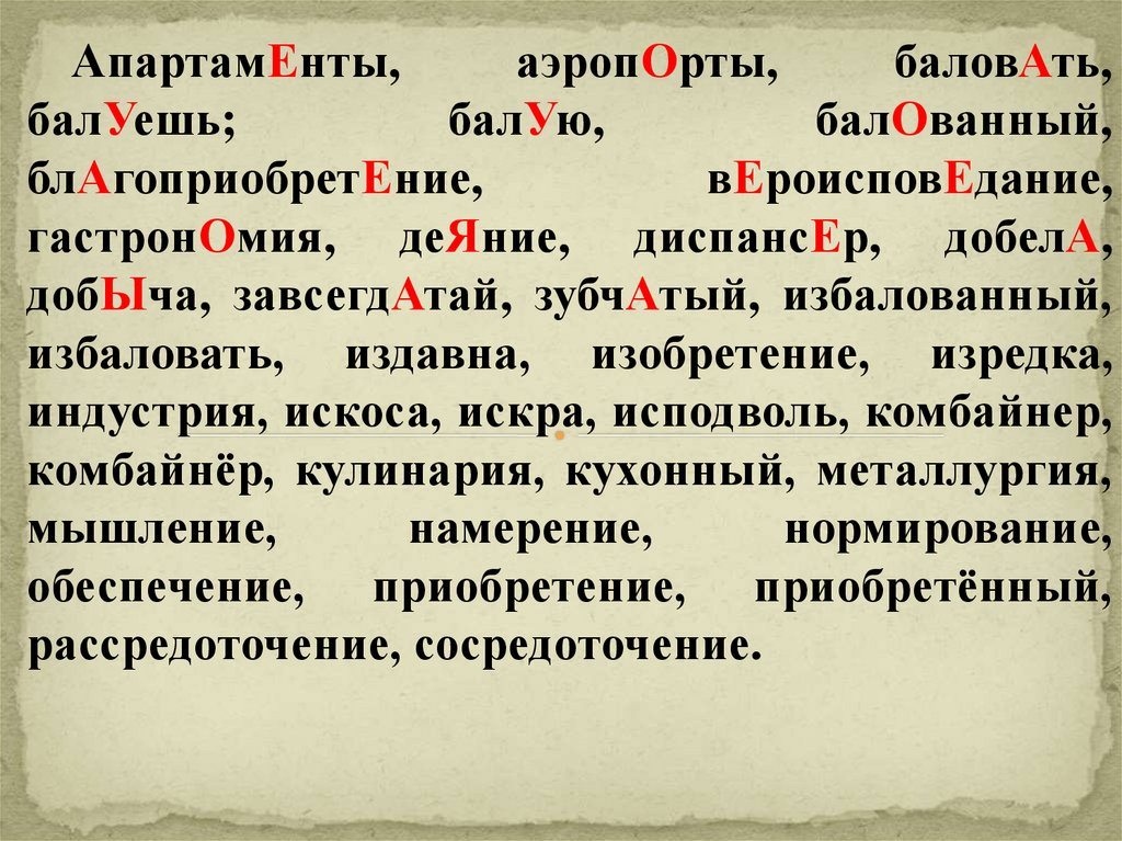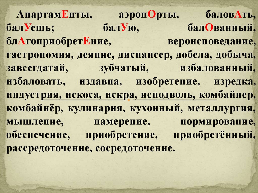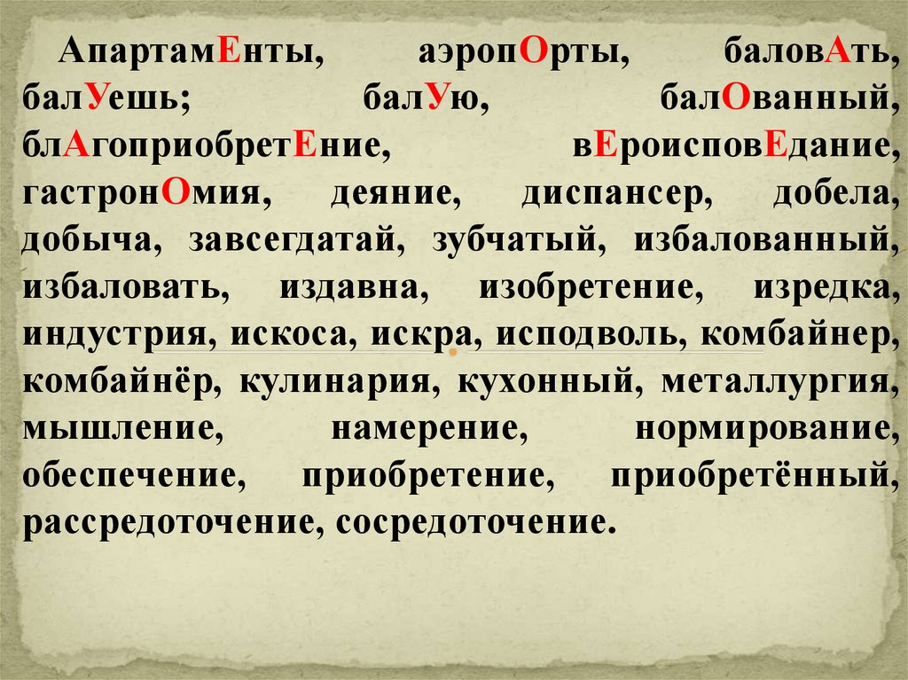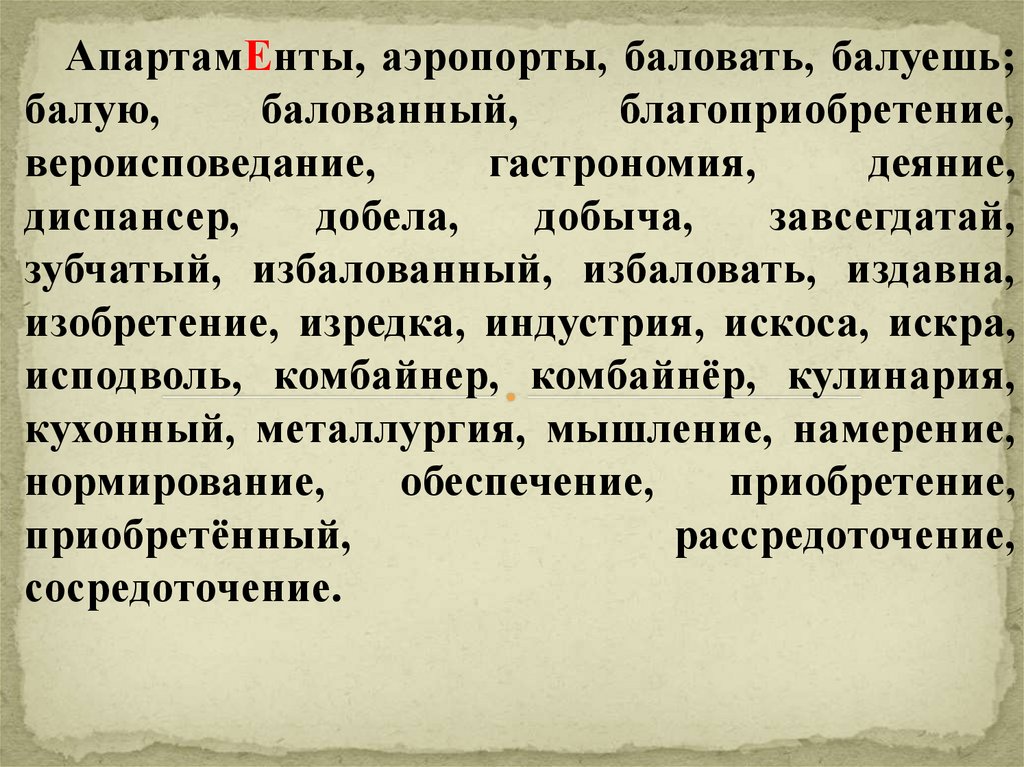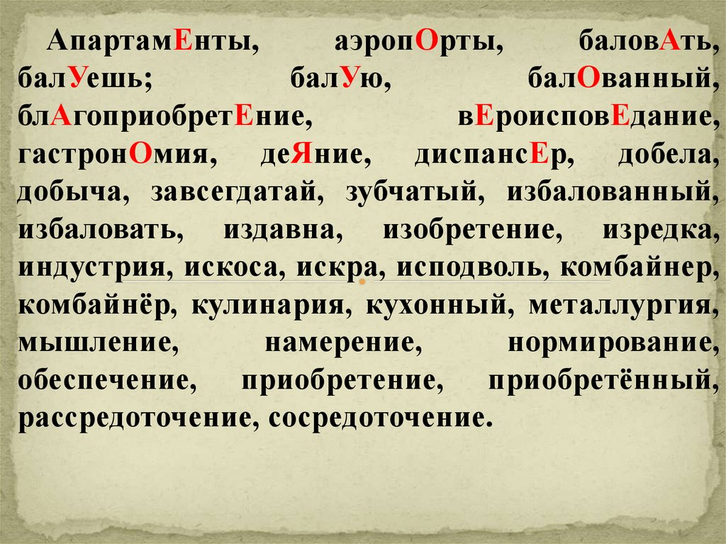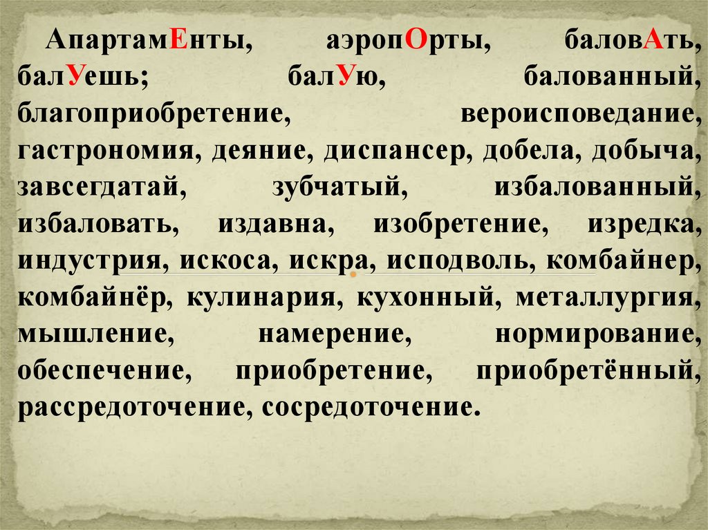 АпартамЕнты, аэропорты, баловать, балуешь;балую,