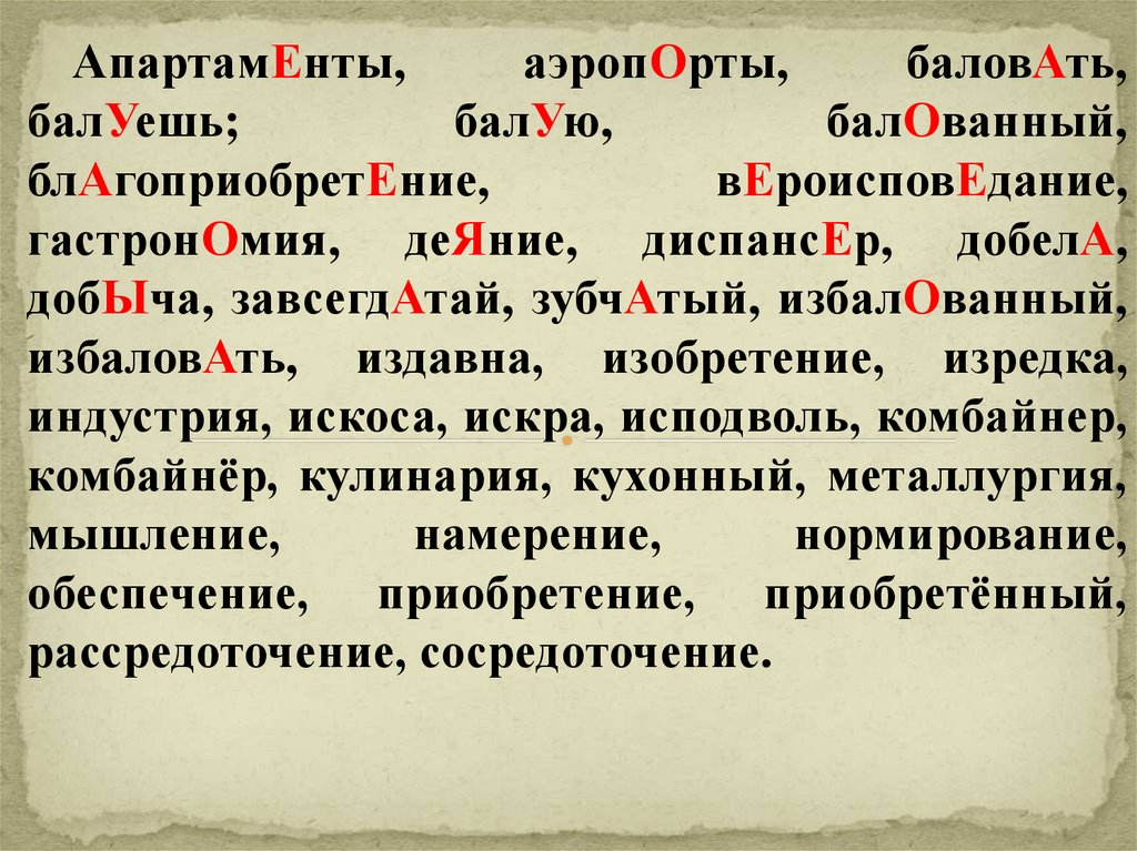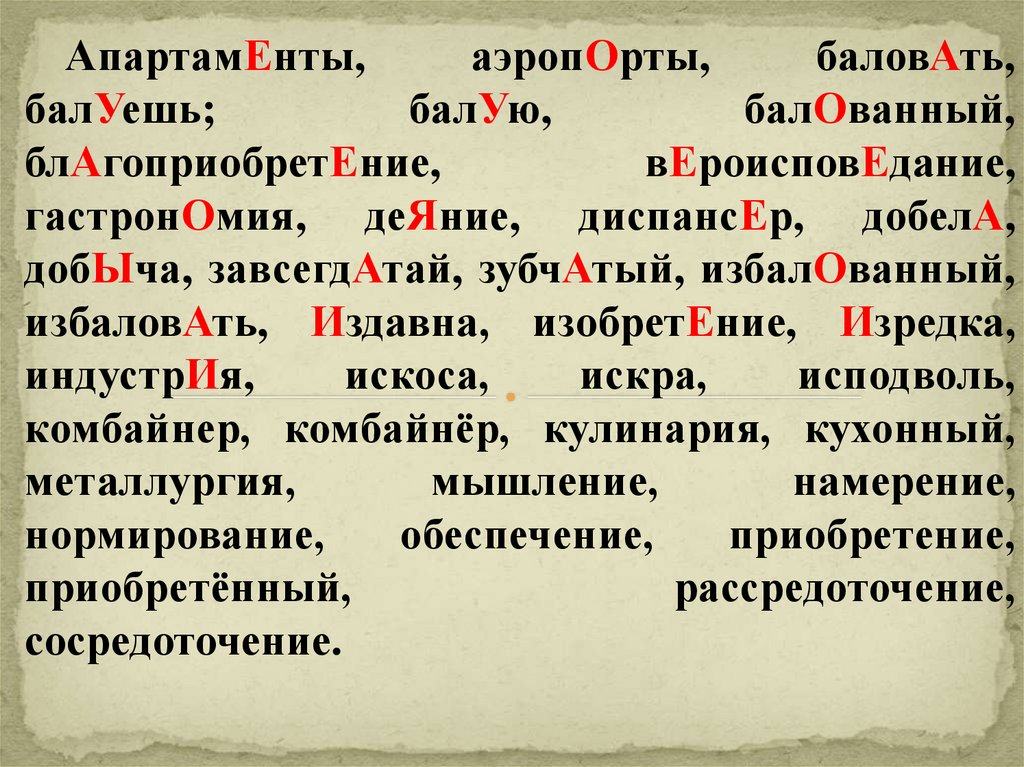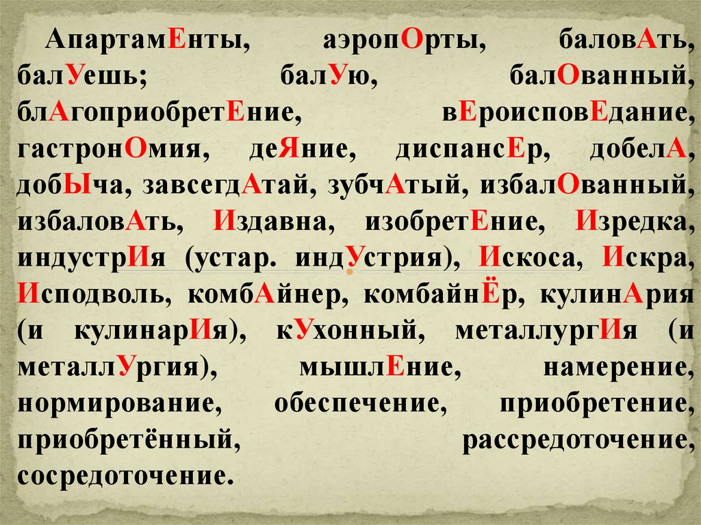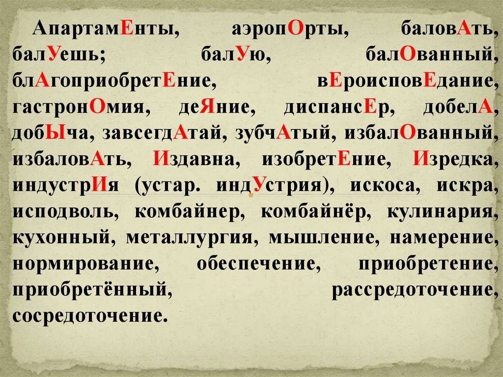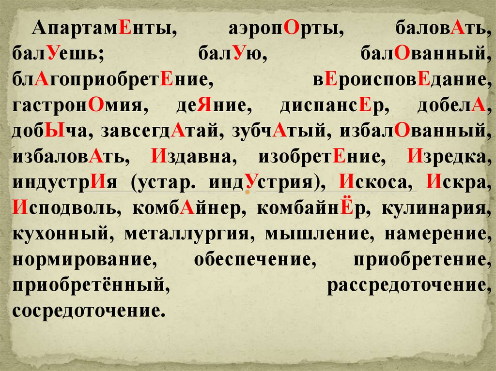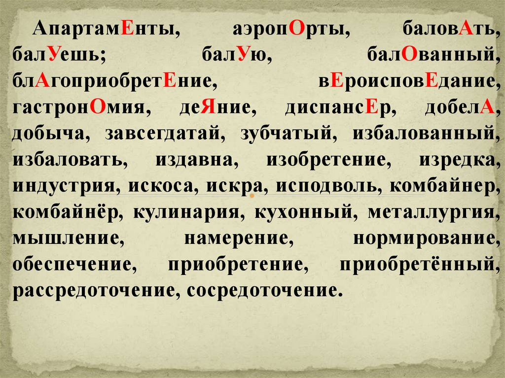 АпартамЕнты, аэропорты, баловать, балуешь;балую,