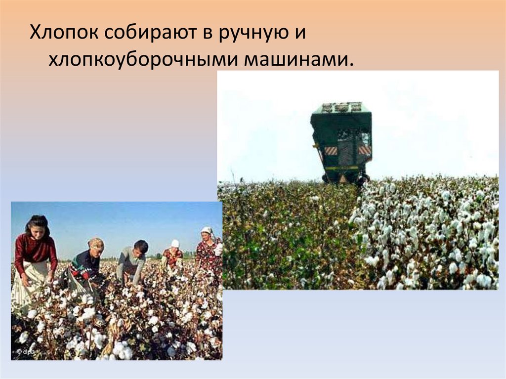 Хлопок собирают в ручную ихлопкоуборочными машинами.