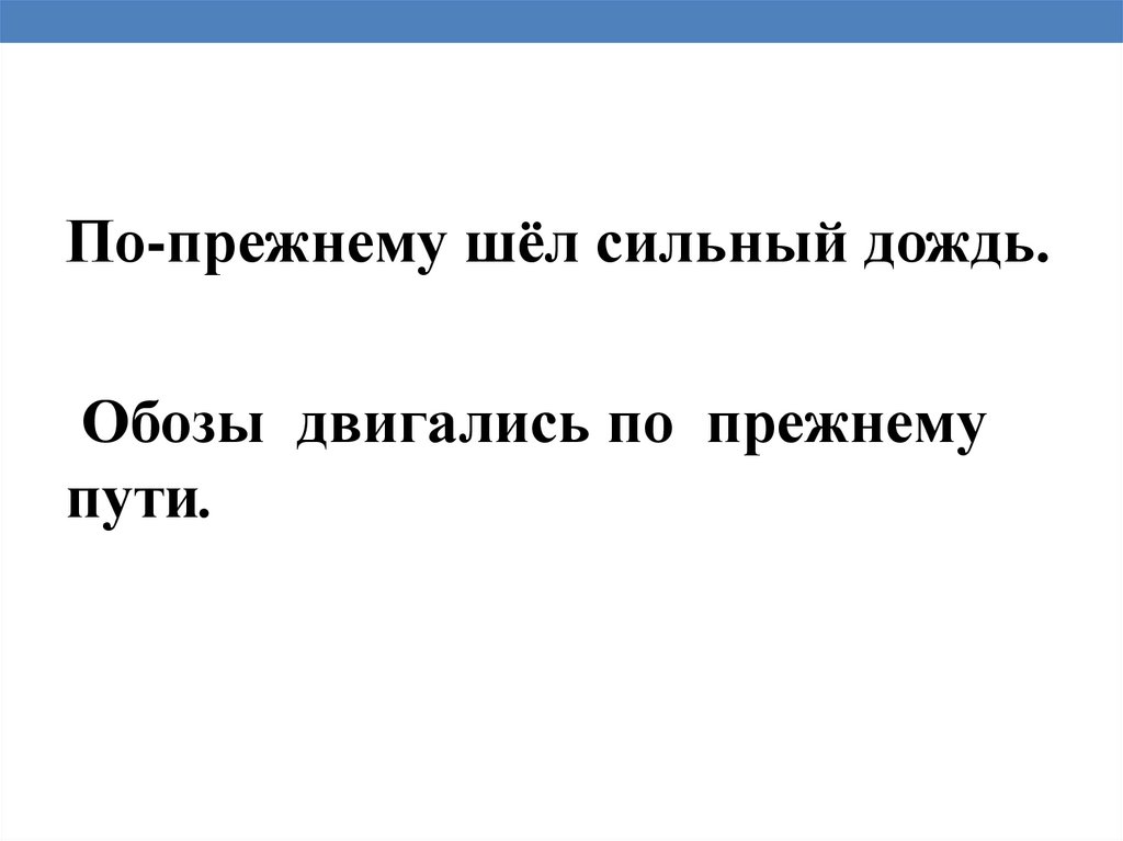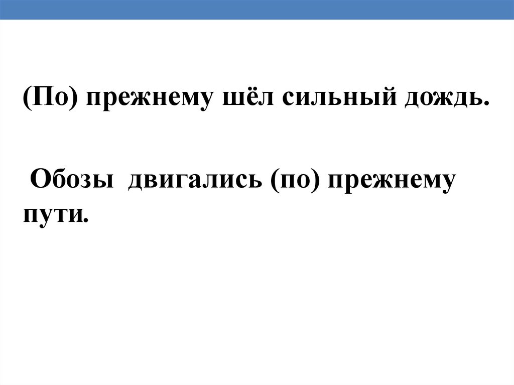 (По) прежнему шёл сильный дождь.Обозы двигались (по) прежнему