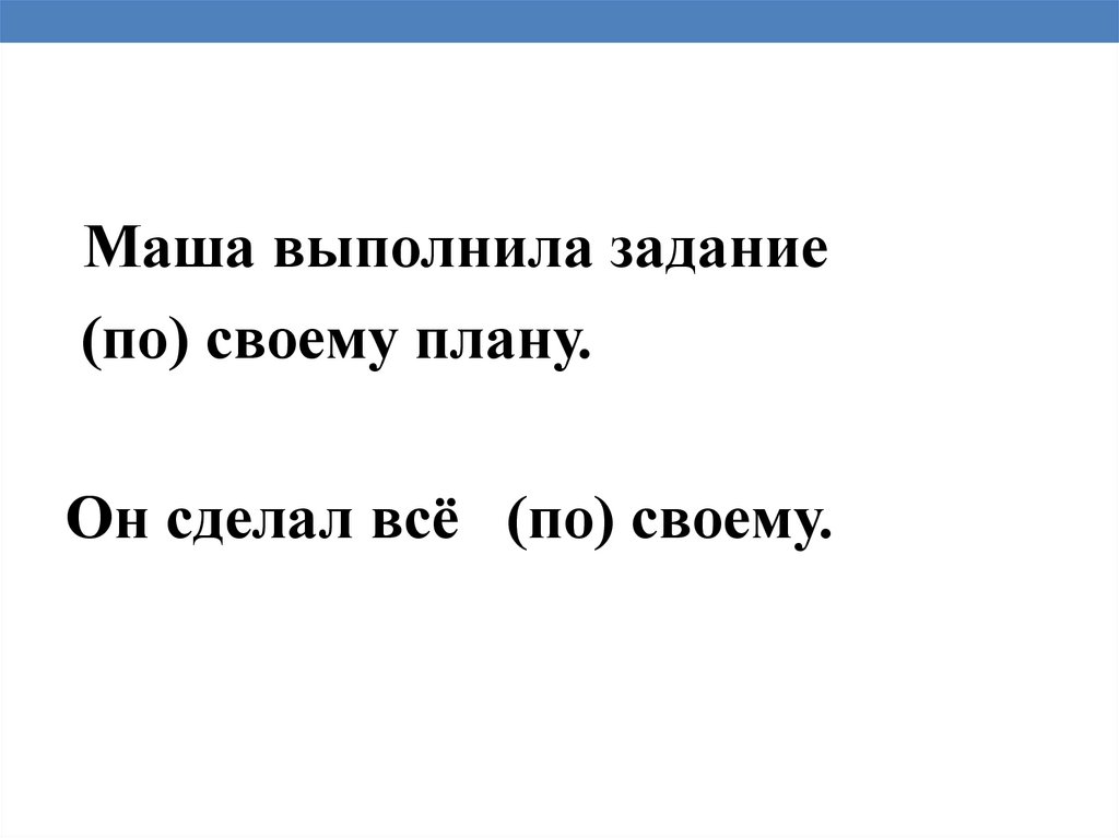 Маша выполнила задание(по) своему плану.
