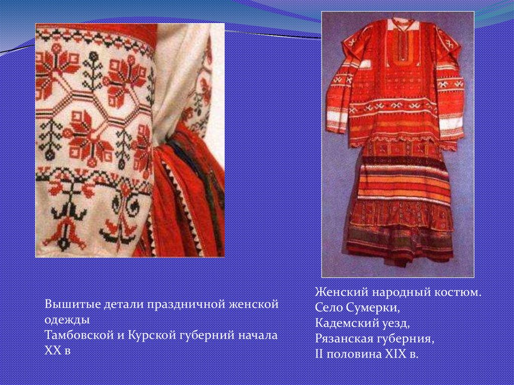 Вышитые детали праздничной женскойодежды