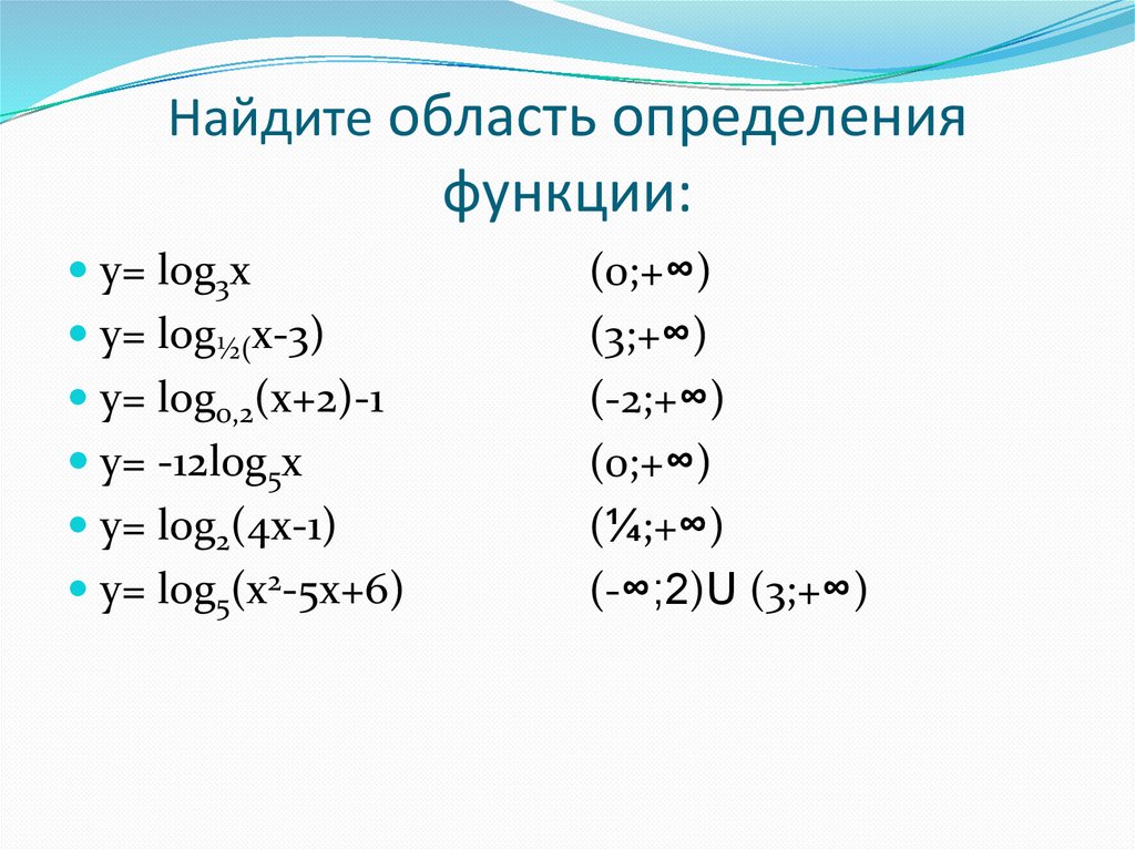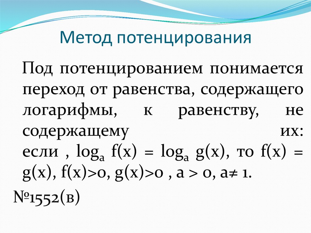 g(х), f(х)>0, g(х)>0 , а > 0, а≠ 1.