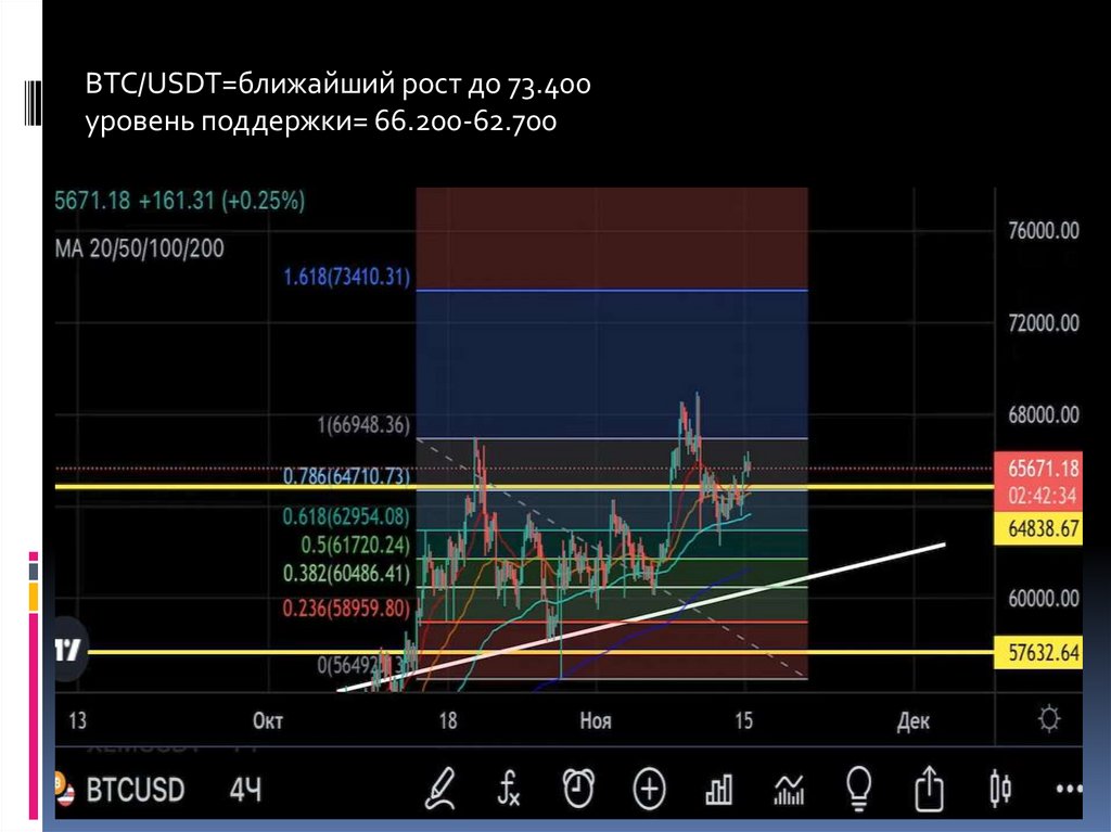BTC/USDT=ближайший рост до 73.400 уровень поддержки= 66.200-62.700
