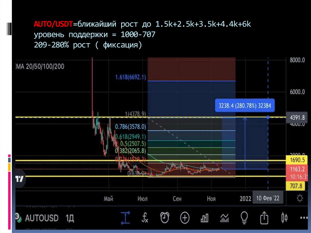 AUTO/USDT=ближайший рост до 1.5k+2.5k+3.5k+4.4k+6kуровень поддержки = 1000-707
