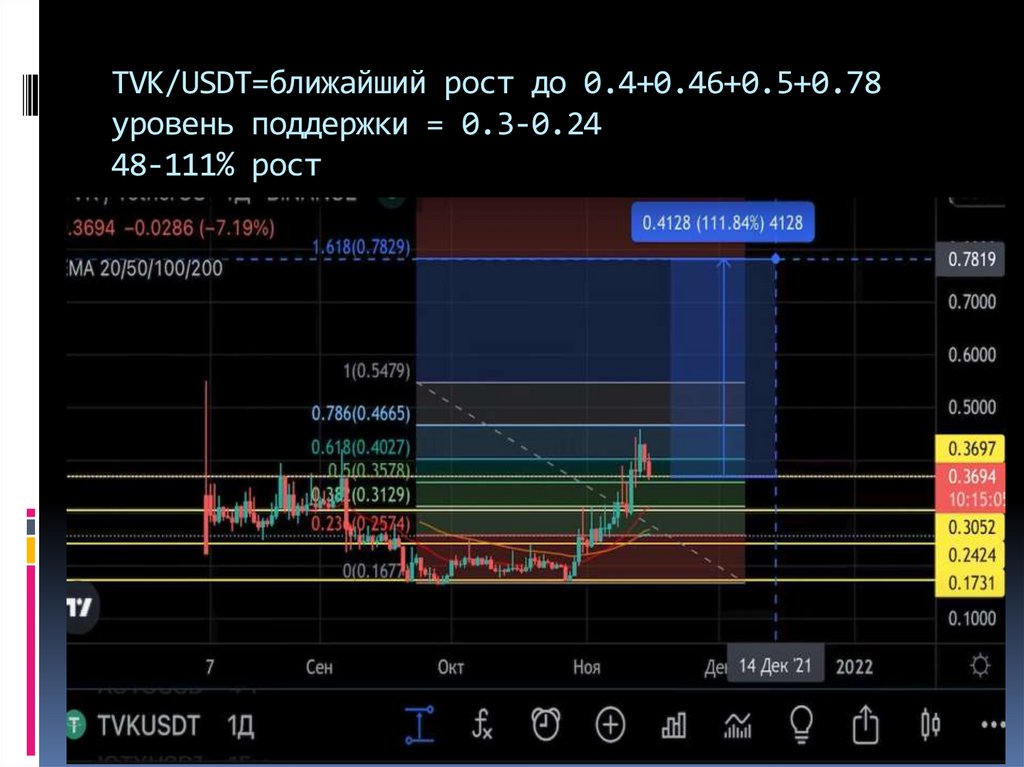 TVK/USDT=ближайший рост до 0.4+0.46+0.5+0.78уровень поддержки = 0.3-0.24