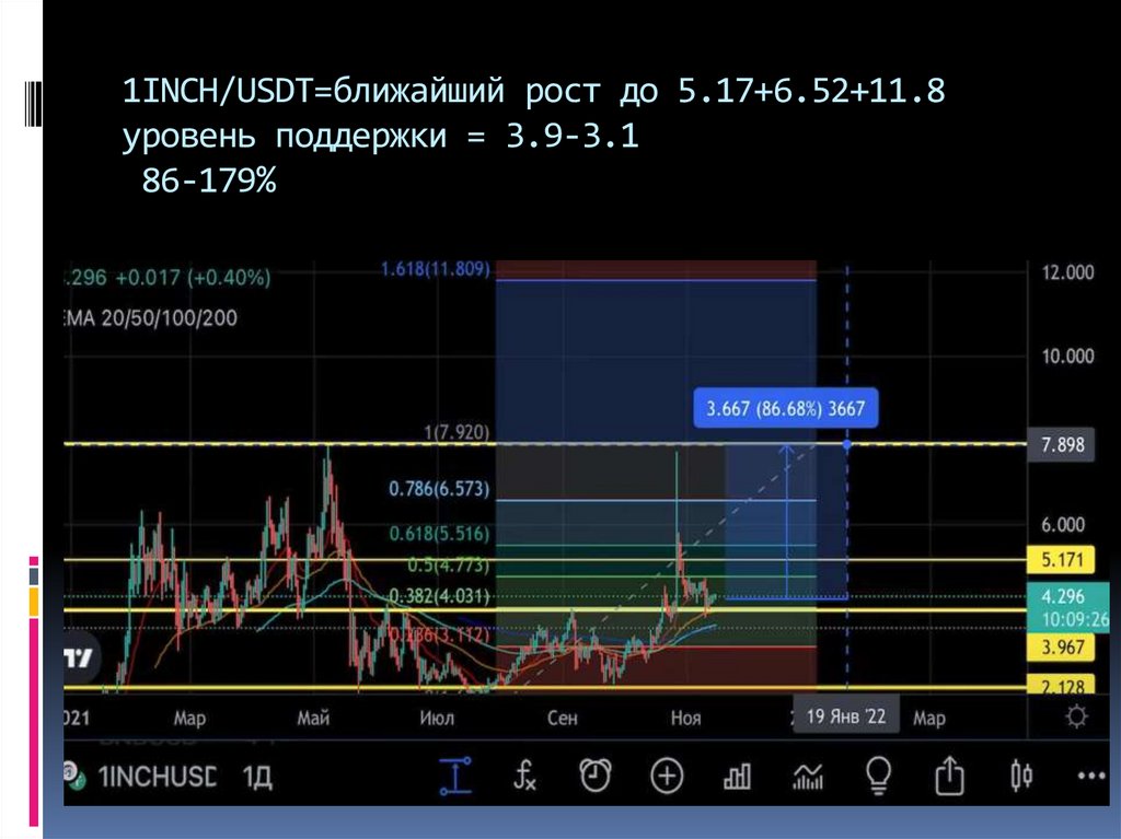 1INCH/USDT=ближайший рост до 5.17+6.52+11.8уровень поддержки = 3.9-3.1