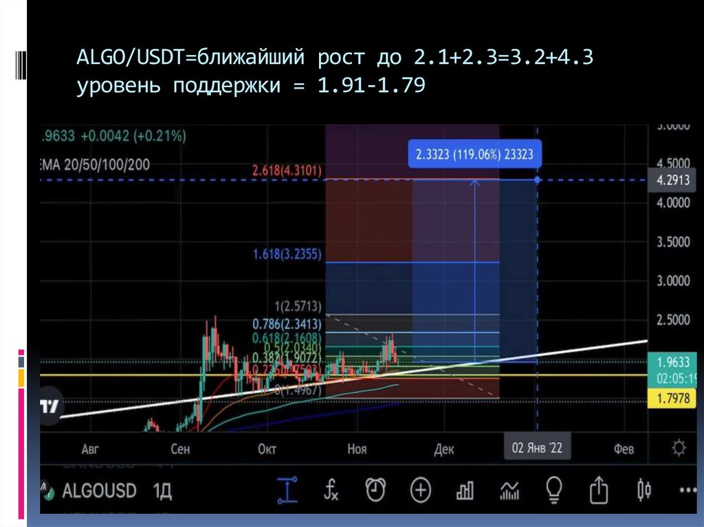 ALGO/USDT=ближайший рост до 2.1+2.3=3.2+4.3уровень поддержки = 1.91-1.79