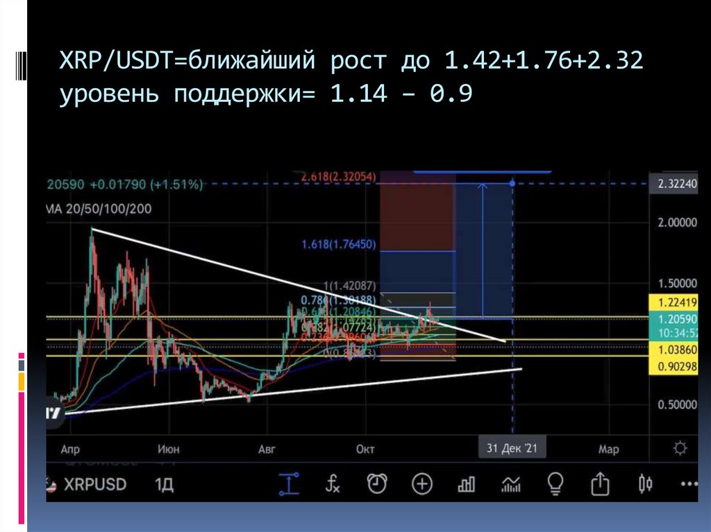 XRP/USDT=ближайший рост до 1.42+1.76+2.32уровень поддержки= 1.14 – 0.9