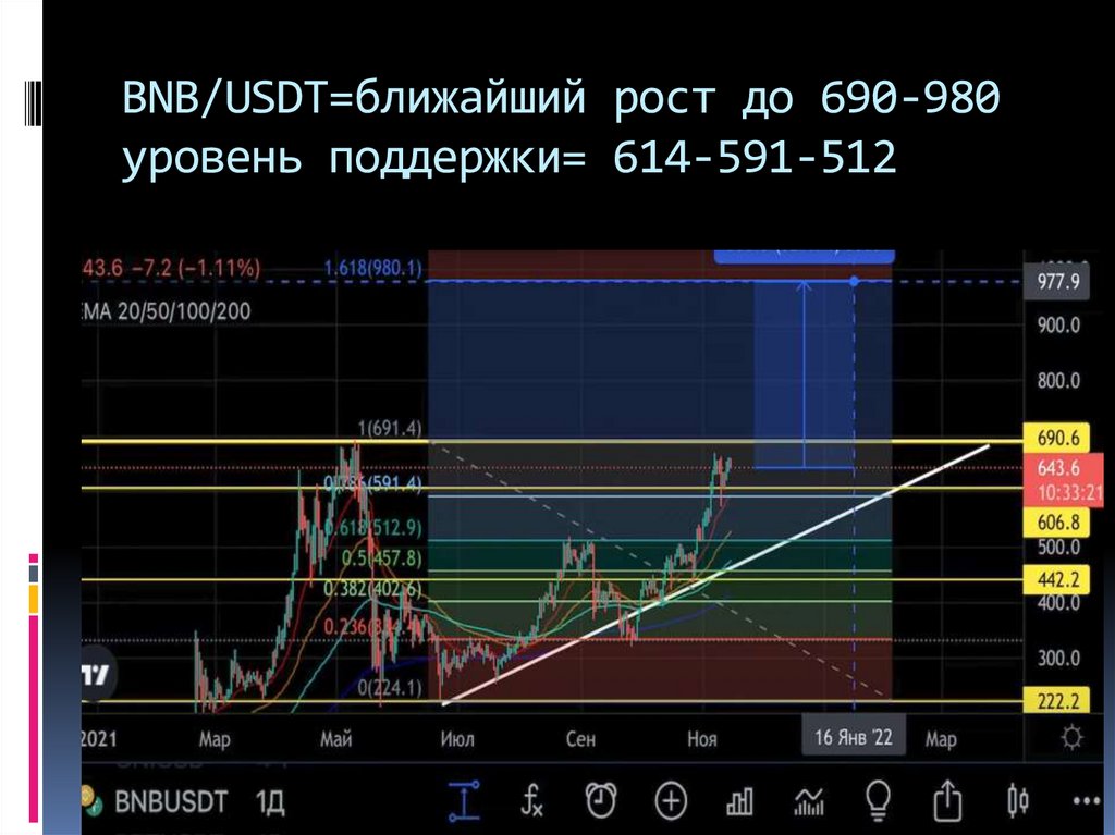 BNB/USDT=ближайший рост до 690-980уровень поддержки= 614-591-512