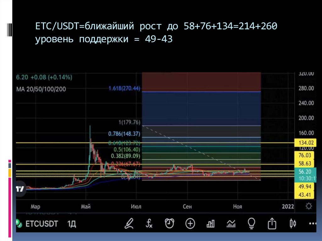 ETC/USDT=ближайший рост до 58+76+134=214+260уровень поддержки = 49-43