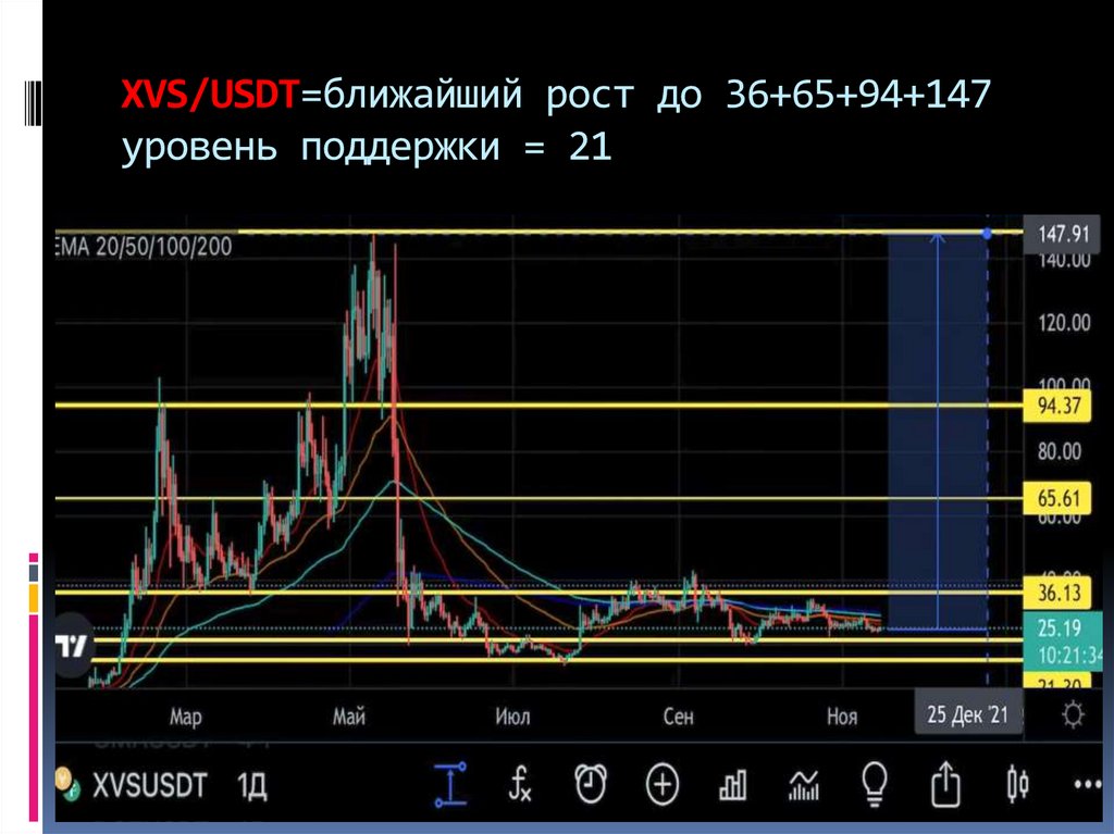 XVS/USDT=ближайший рост до 36+65+94+147уровень поддержки = 21