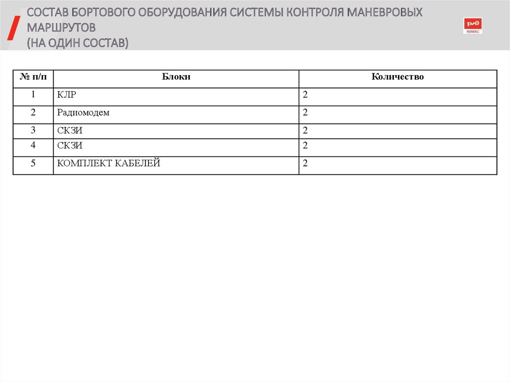 СОСТАВ БОРТОВОГО ОБОРУДОВАНИЯ СИСТЕМЫ КОНТРОЛЯ МАНЕВРОВЫХМАРШРУТОВ