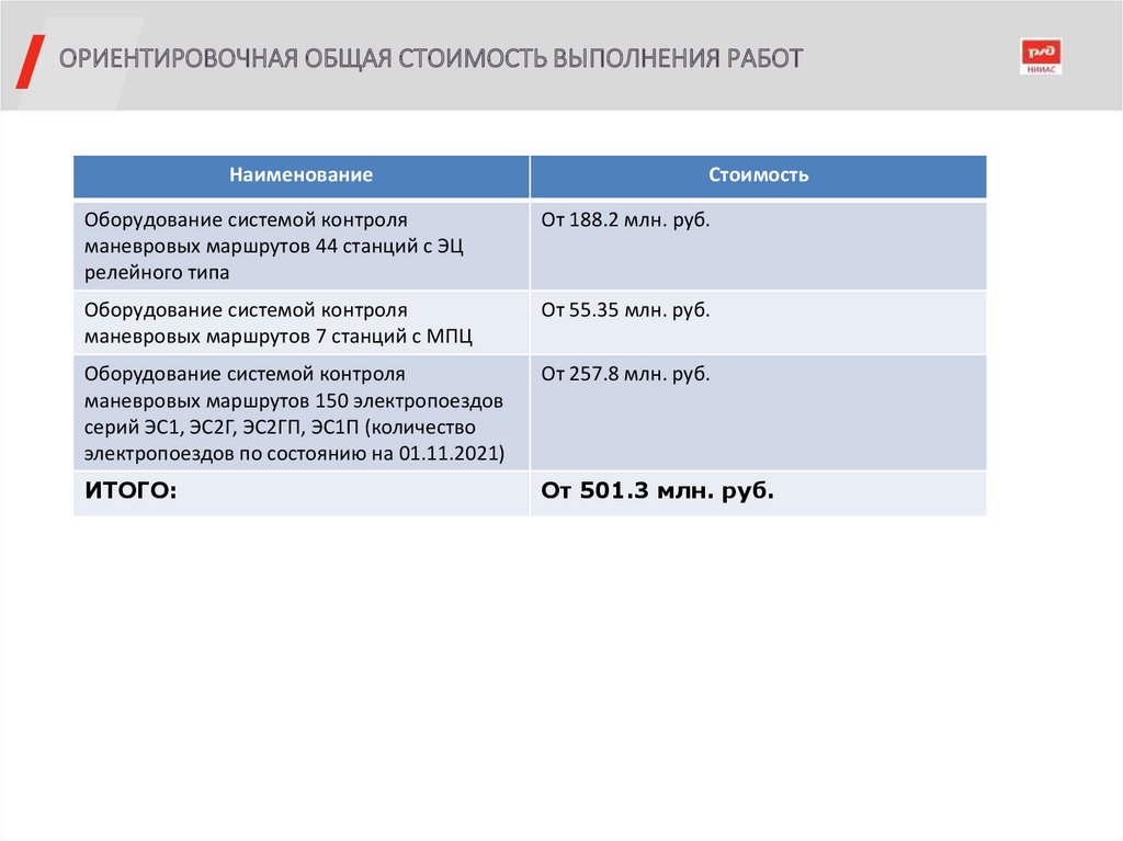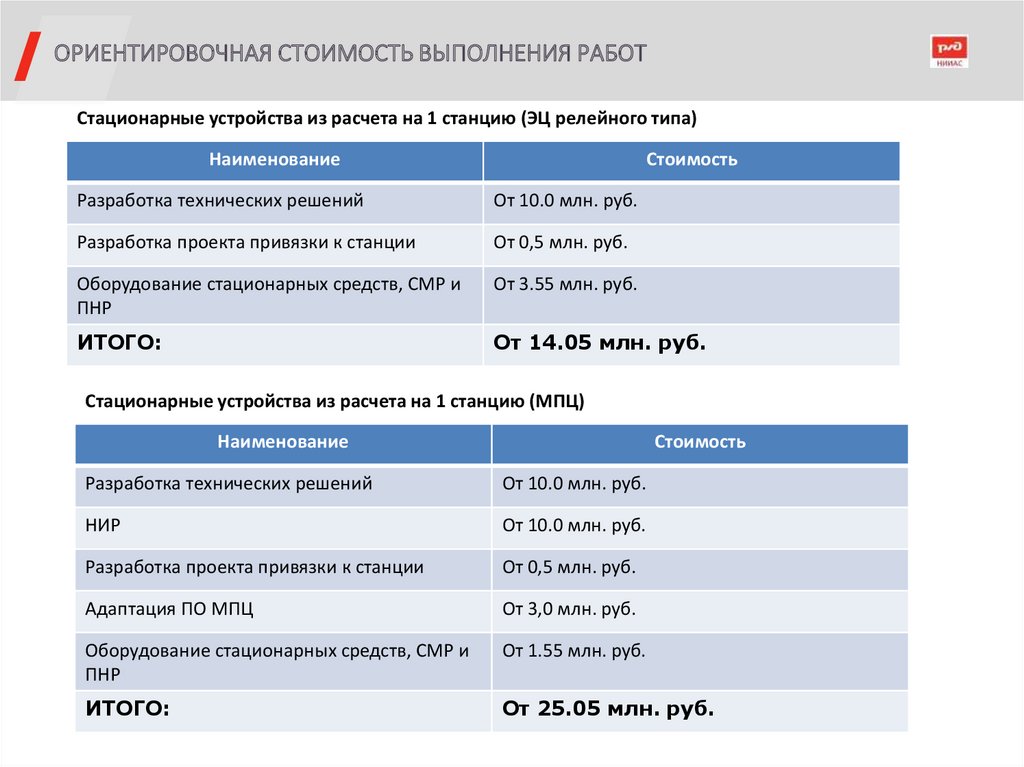 ОРИЕНТИРОВОЧНАЯ СТОИМОСТЬ ВЫПОЛНЕНИЯ РАБОТСтационарные устройства из расчета на 1 станцию (ЭЦ релейного типа)