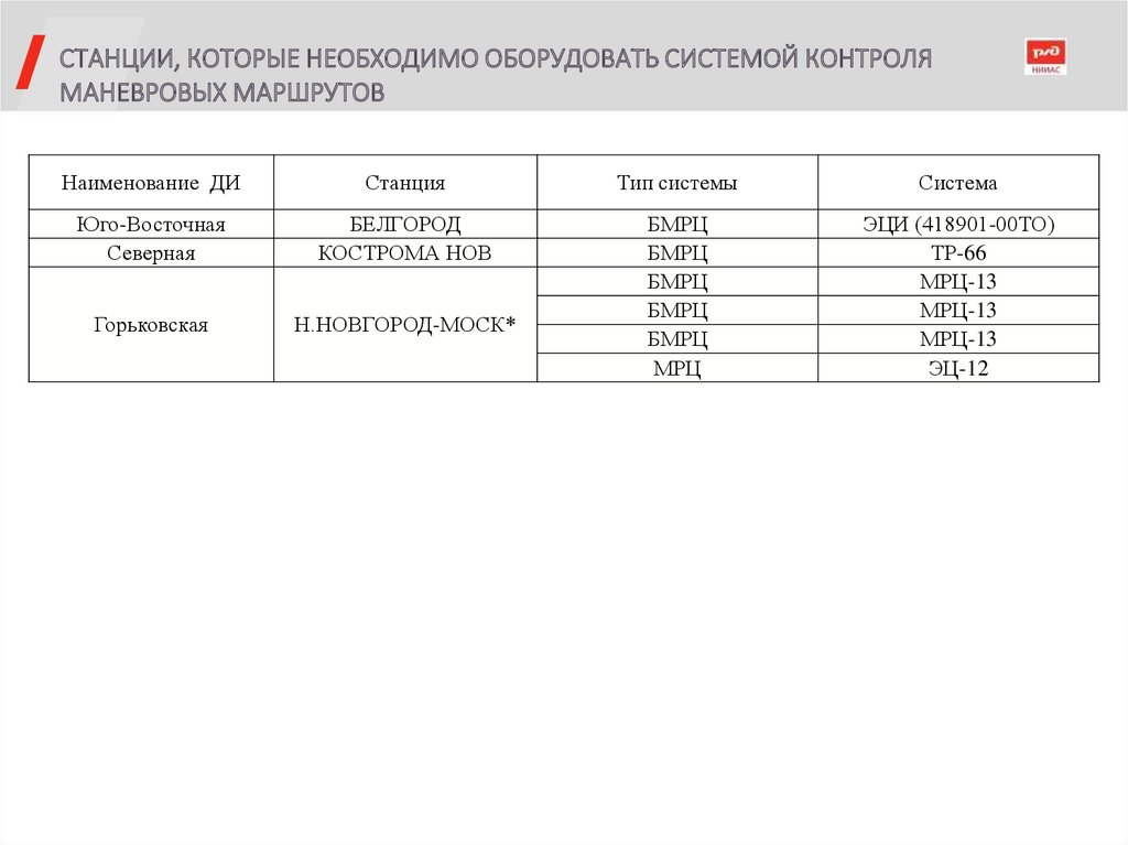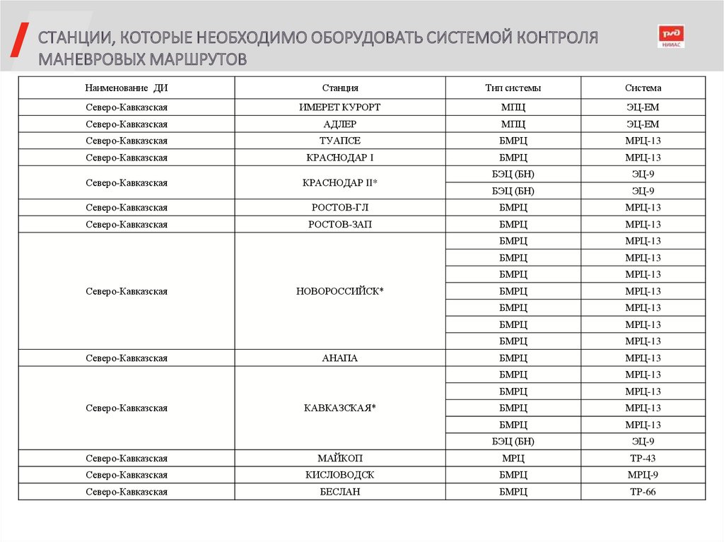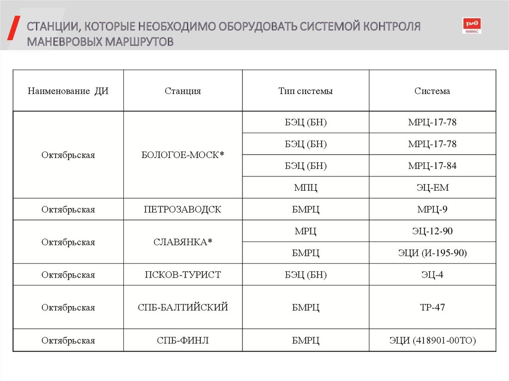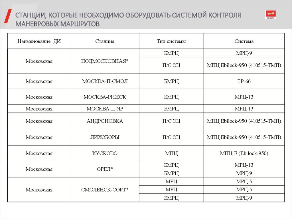 СТАНЦИИ, КОТОРЫЕ НЕОБХОДИМО ОБОРУДОВАТЬ СИСТЕМОЙ КОНТРОЛЯМАНЕВРОВЫХ МАРШРУТОВ