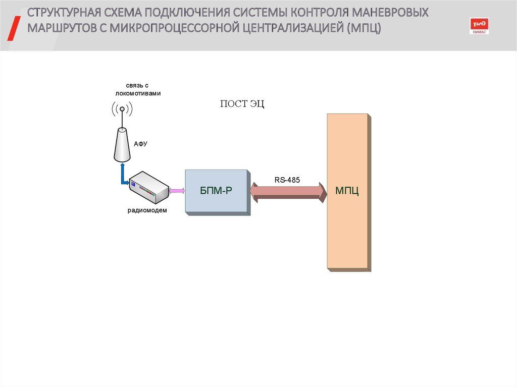 СТРУКТУРНАЯ СХЕМА ПОДКЛЮЧЕНИЯ СИСТЕМЫ КОНТРОЛЯ МАНЕВРОВЫХМАРШРУТОВ С МИКРОПРОЦЕССОРНОЙ ЦЕНТРАЛИЗАЦИЕЙ (МПЦ)