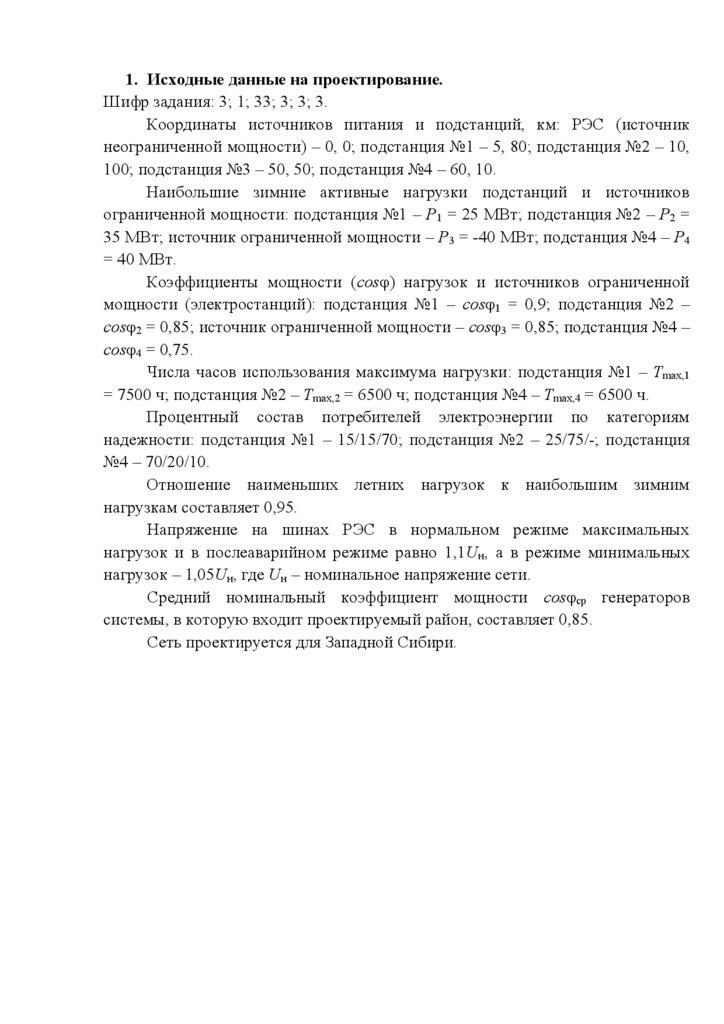 1. Исходные данные на проектирование.Шифр задания: 3; 1; 33; 3; 3; 3.