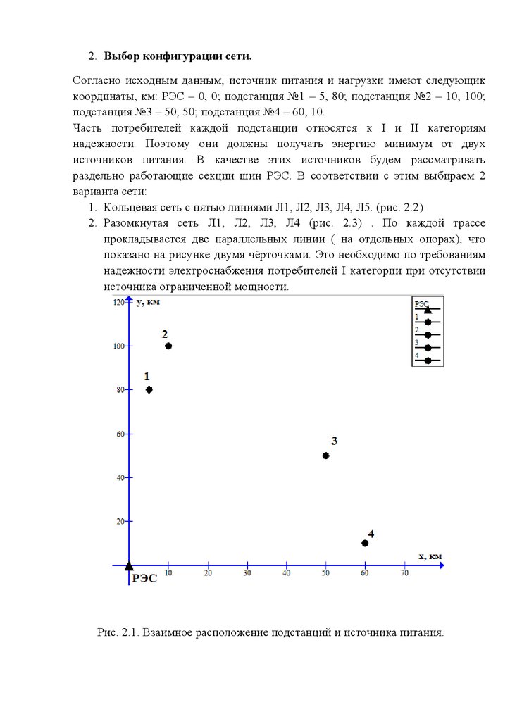 координаты, км: РЭС – 0, 0; подстанция №1 – 5, 80; подстанция №2 – 10, 100;