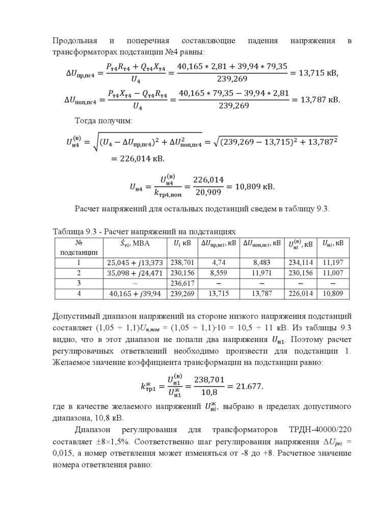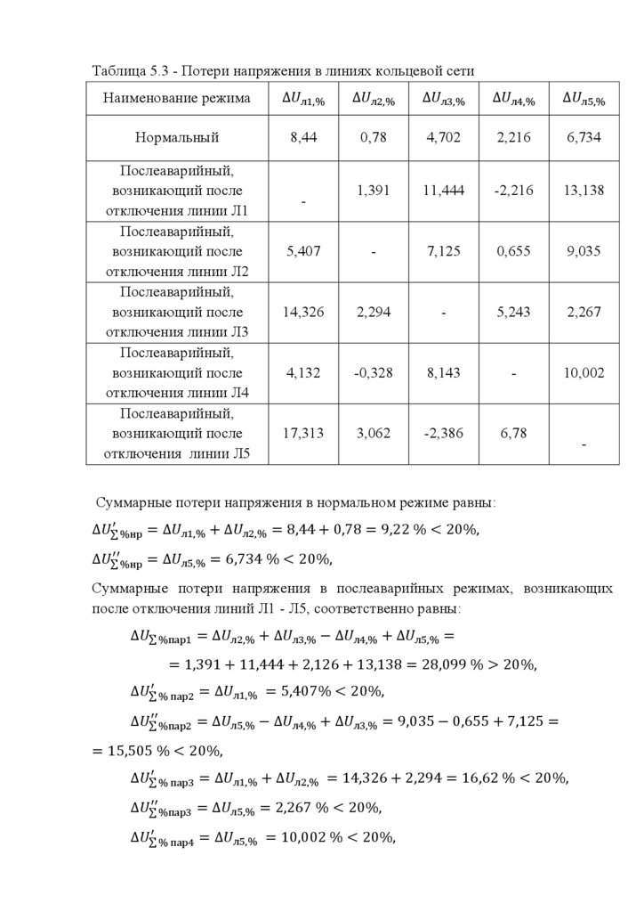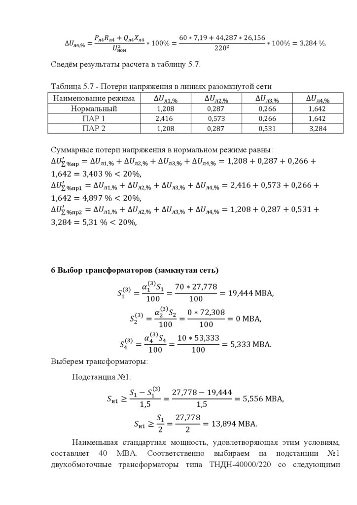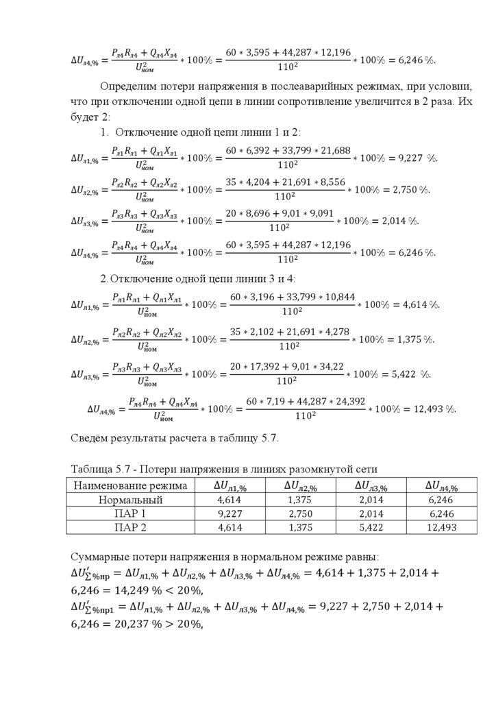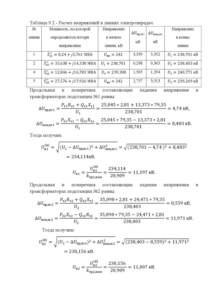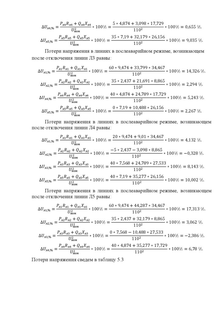 нагрузок и в послеаварийном режиме равно 1,1Uн, а в режиме минимальных