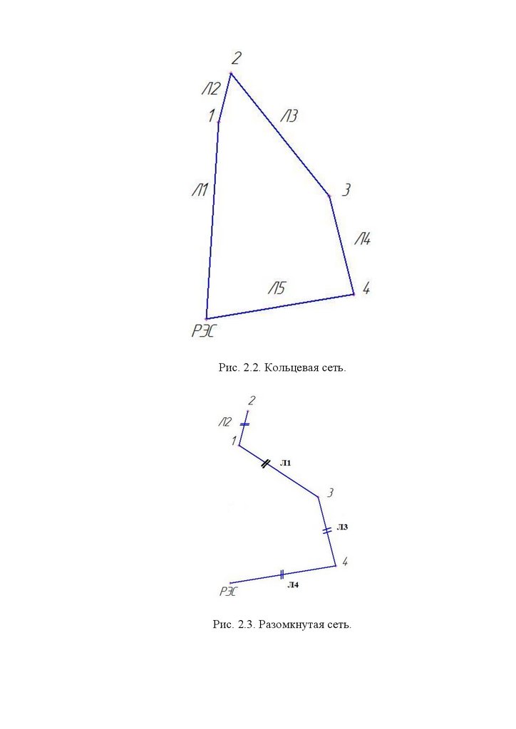 Рис. 2.2. Кольцевая сеть.Рис. 2.3. Разомкнутая сеть.