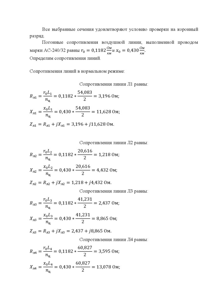 Линия Л1 соединяет РЭС и подстанцию №1. Согласно исходным данным,