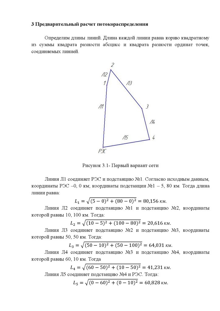 3 Предварительный расчет потокораспределенияОпределим длины линий. Длина каждой линии равна корню квадратному