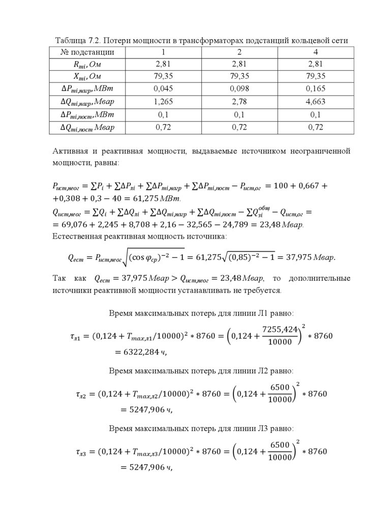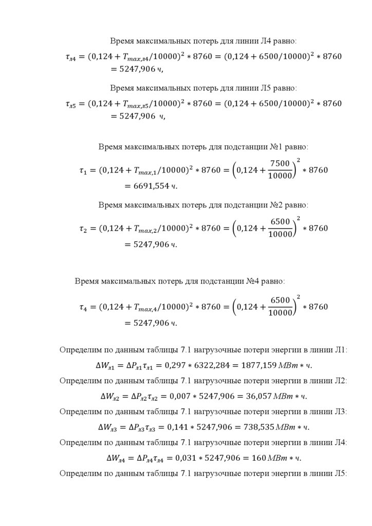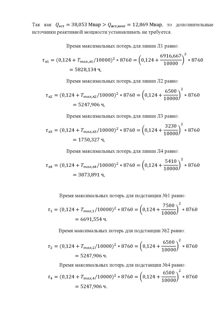 = 7500 ч; подстанция №2 – Tmax,2 = 6500 ч; подстанция №4 – Tmax,4 = 6500 ч.