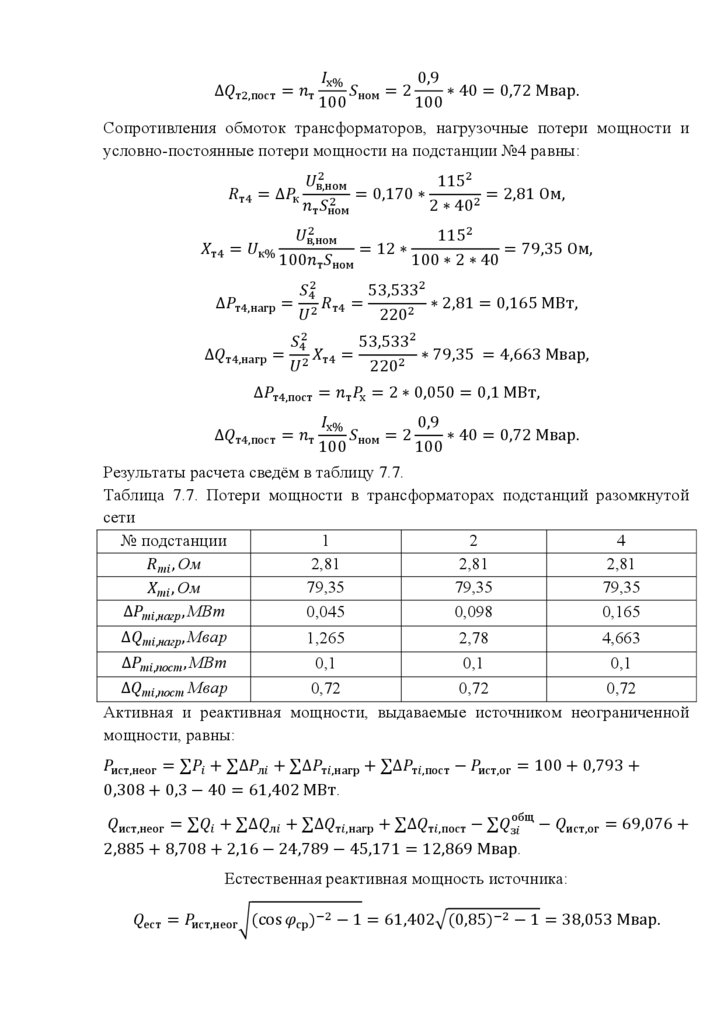 cosφ2 = 0,85; источник ограниченной мощности – cosφ3 = 0,85; подстанция №4 –
