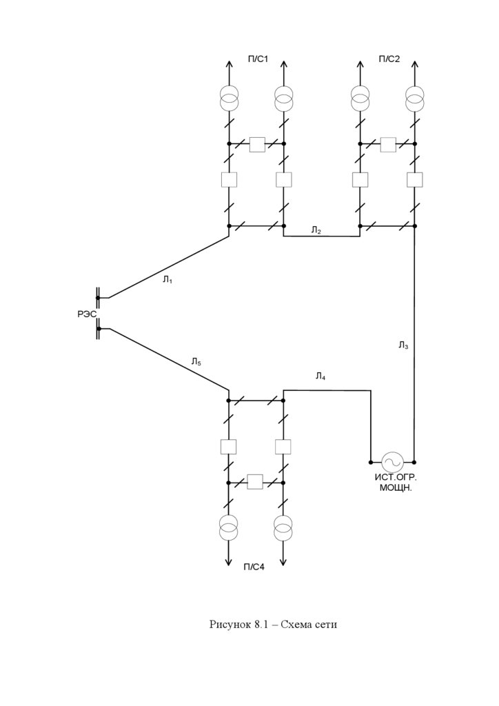 2. Выбор конфигурации сети.Согласно исходным данным, источник питания и нагрузки имеют следующик