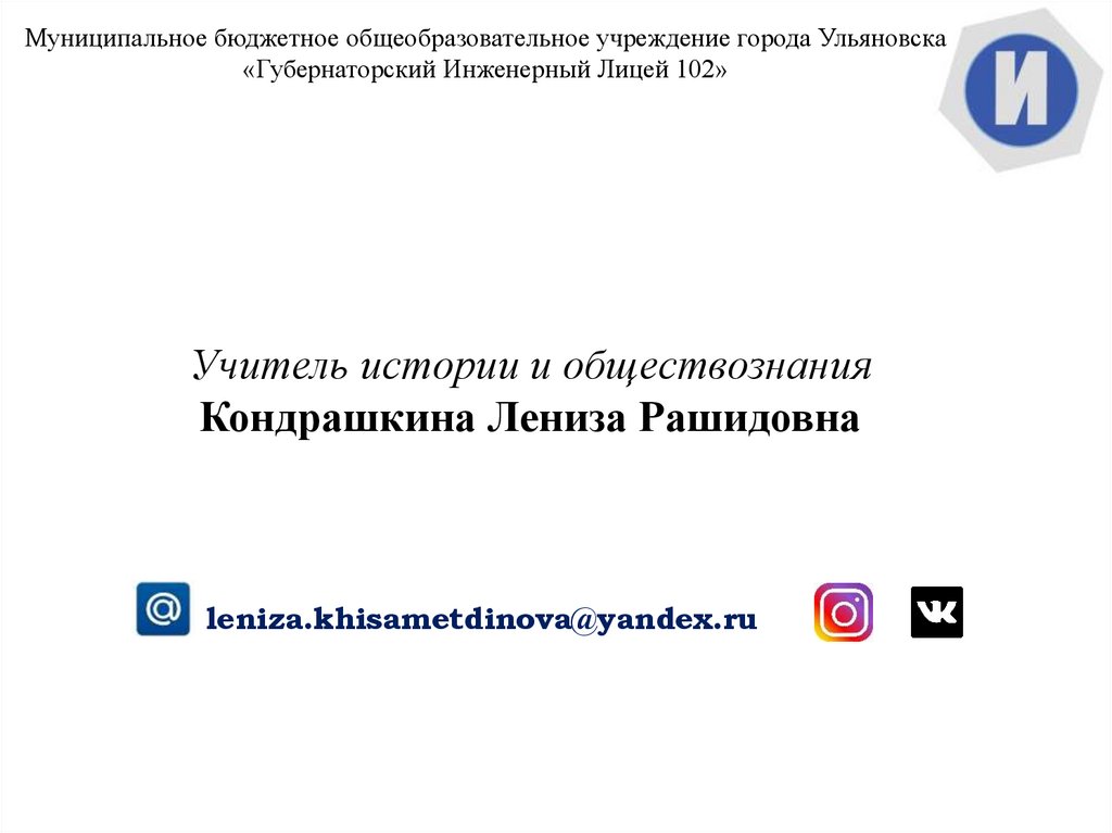 Муниципальное бюджетное общеобразовательное учреждение города Ульяновска«Губернаторский Инженерный Лицей 102»