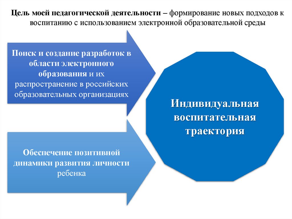 Цель моей педагогической деятельности – формирование новых подходов квоспитанию с использованием электронной образовательной среды