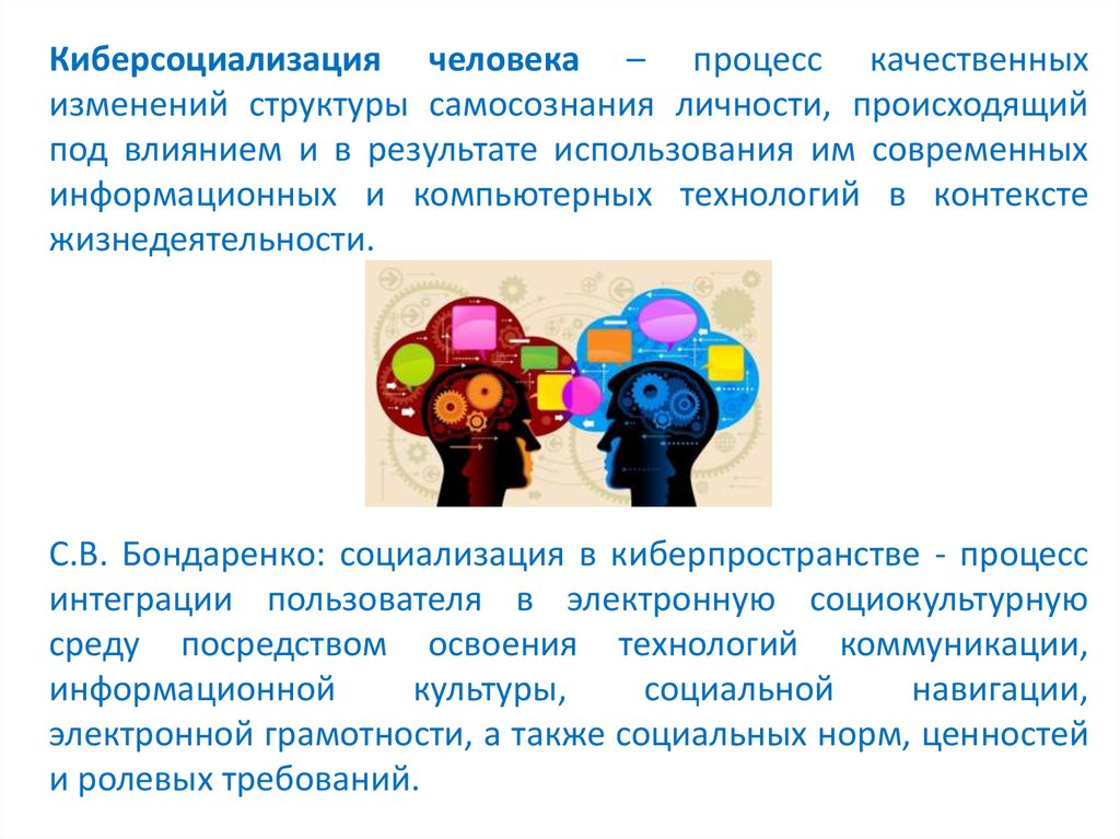 Киберсоциализация человека – процесс качественныхизменений структуры самосознания личности, происходящий