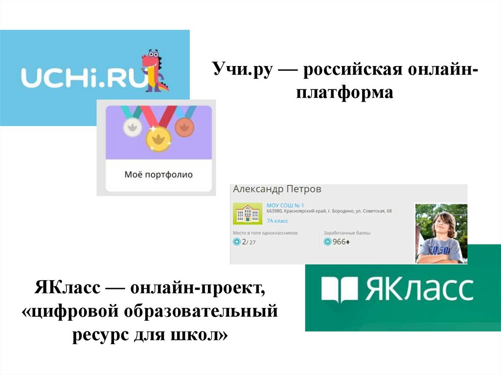 Учи.ру — российская онлайнплатформаЯКласс — онлайн-проект,