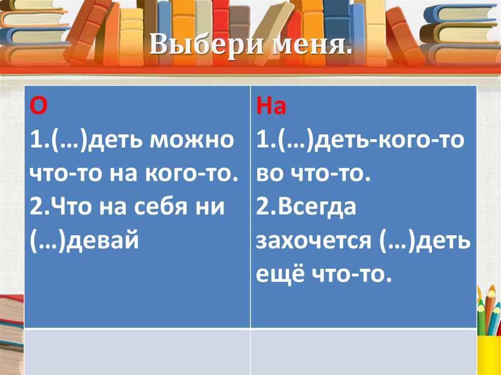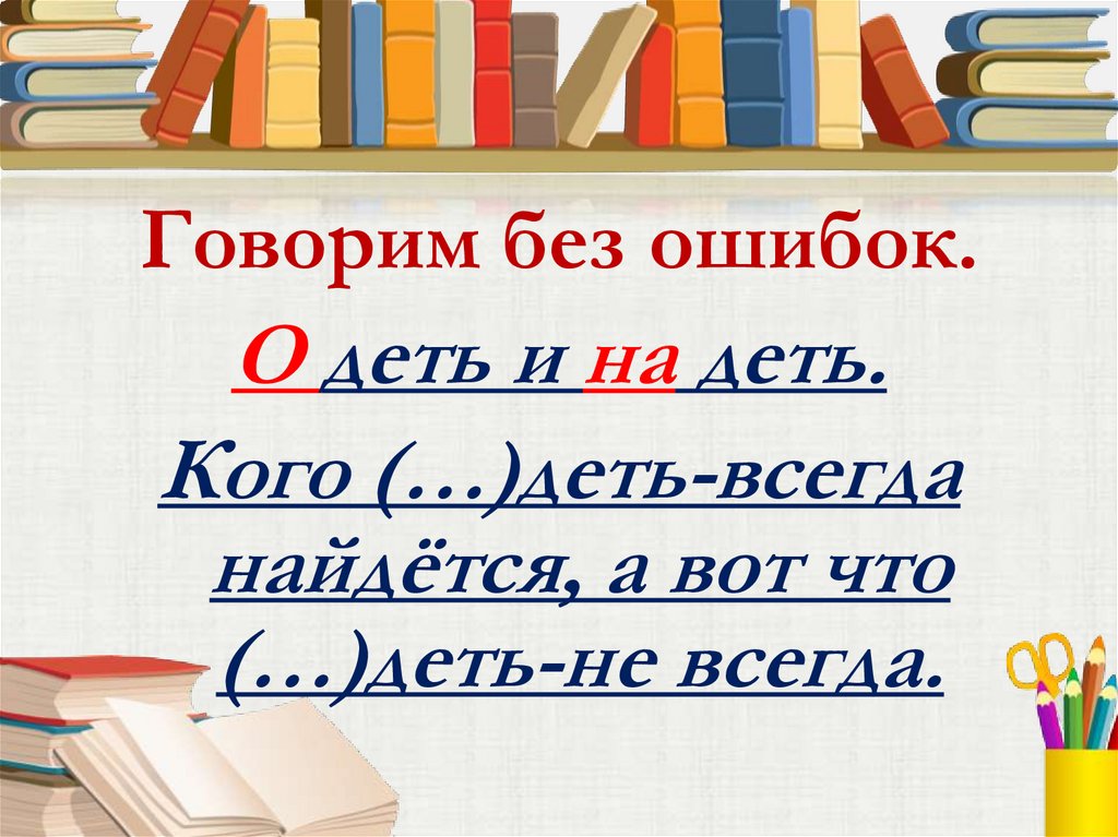 Говорим без ошибок.О деть и на деть.
