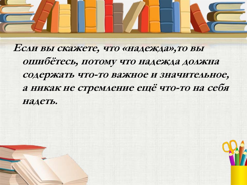 Если вы скажете, что «надежда»,то выошибётесь, потому что надежда должна