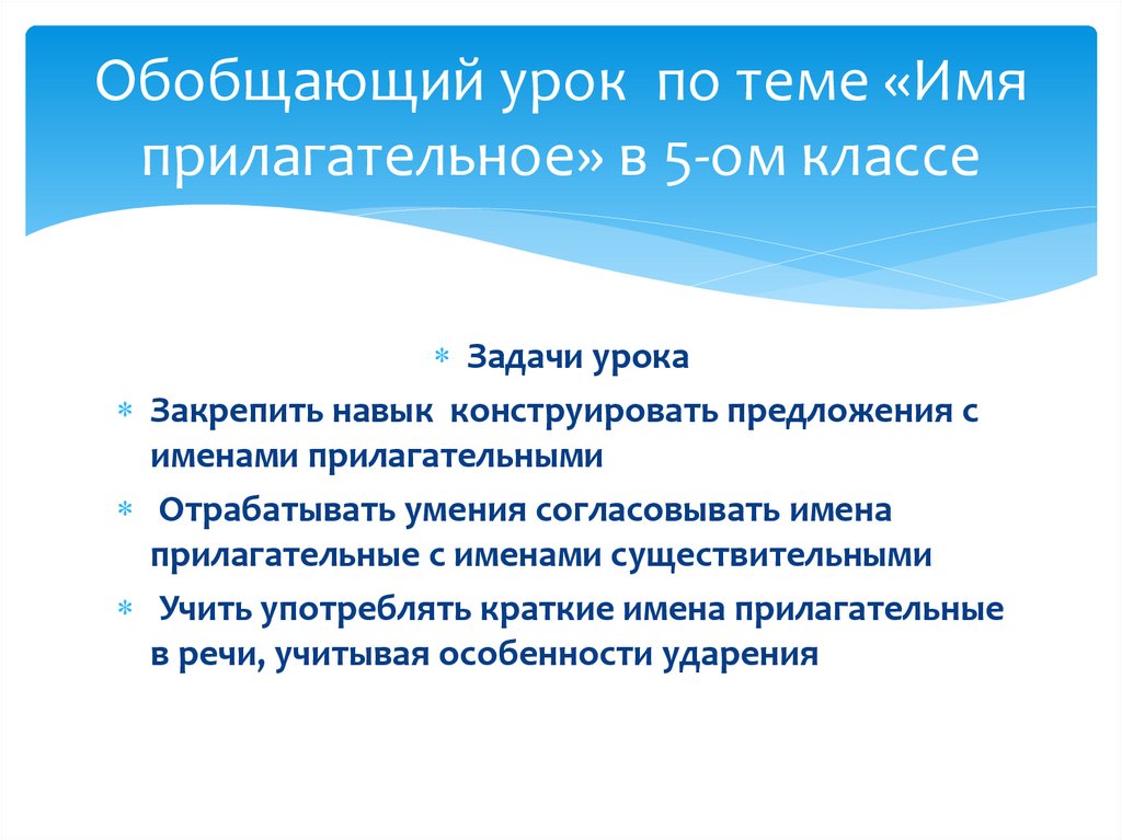 Обобщающий урок по теме «Имяприлагательное» в 5-ом классе