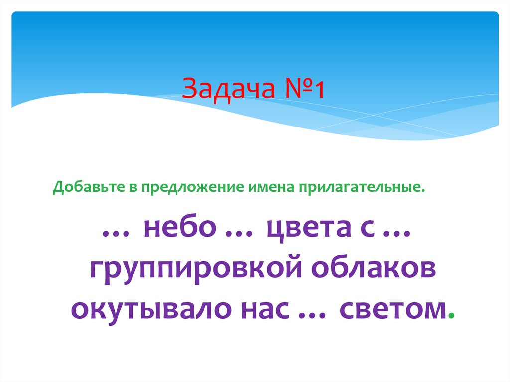 Задача №1Добавьте в предложение имена прилагательные.