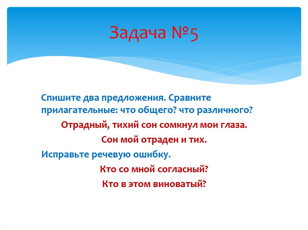 Задача №5Спишите два предложения. Сравните