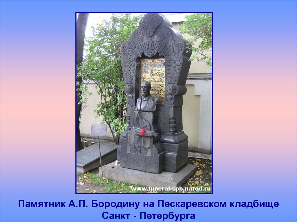 Памятник А.П. Бородину на Пескаревском кладбищеСанкт - Петербурга