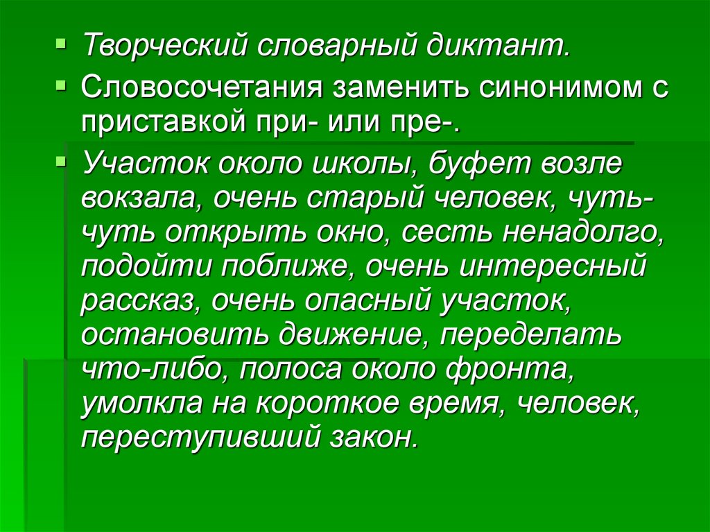 Творческий словарный диктант.Словосочетания заменить синонимом с