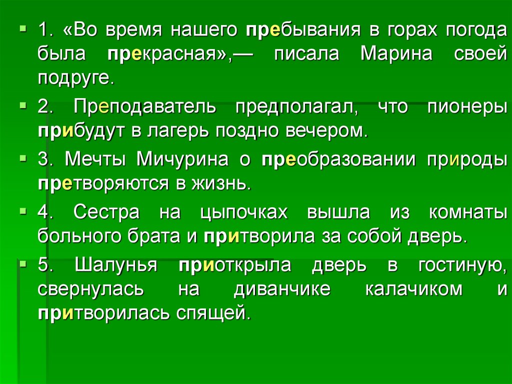 приставок при и пре, отработать на