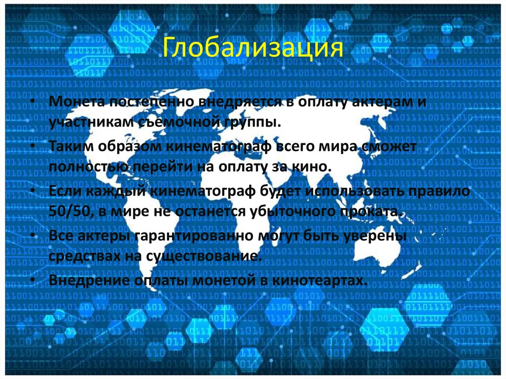 Глобализация• Монета постепенно внедряется в оплату актерам и