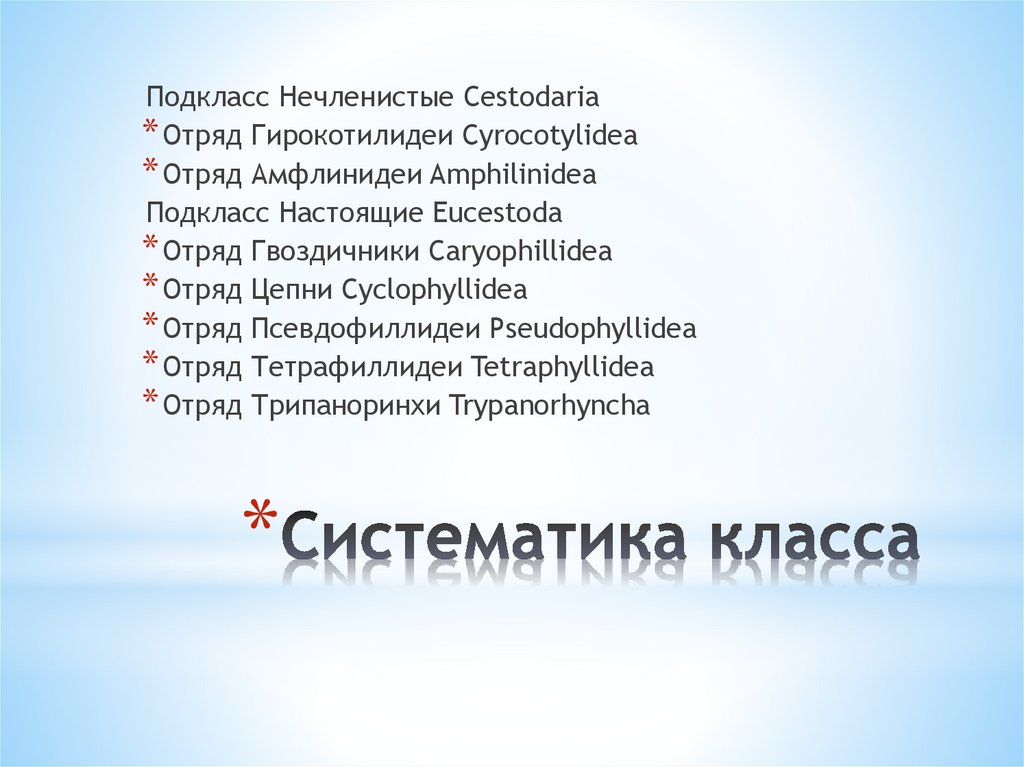 Лекция 9. Систематических обзор плоских червей. Цестоды