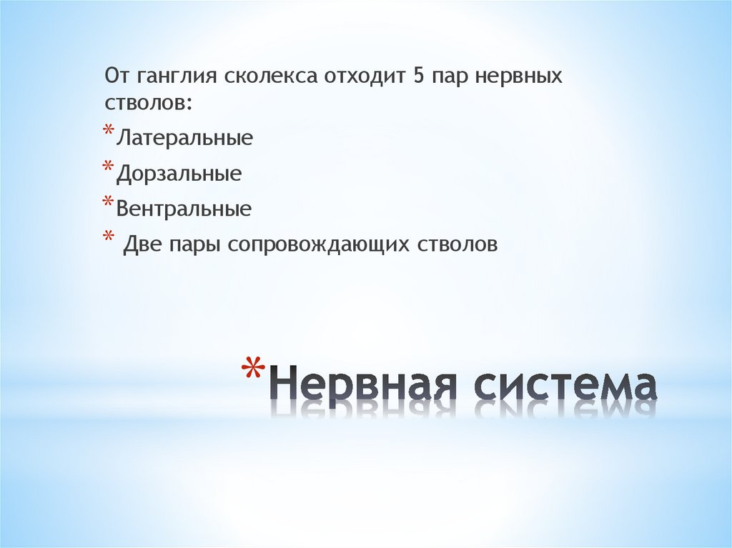 От ганглия сколекса отходит 5 пар нервныхстволов: