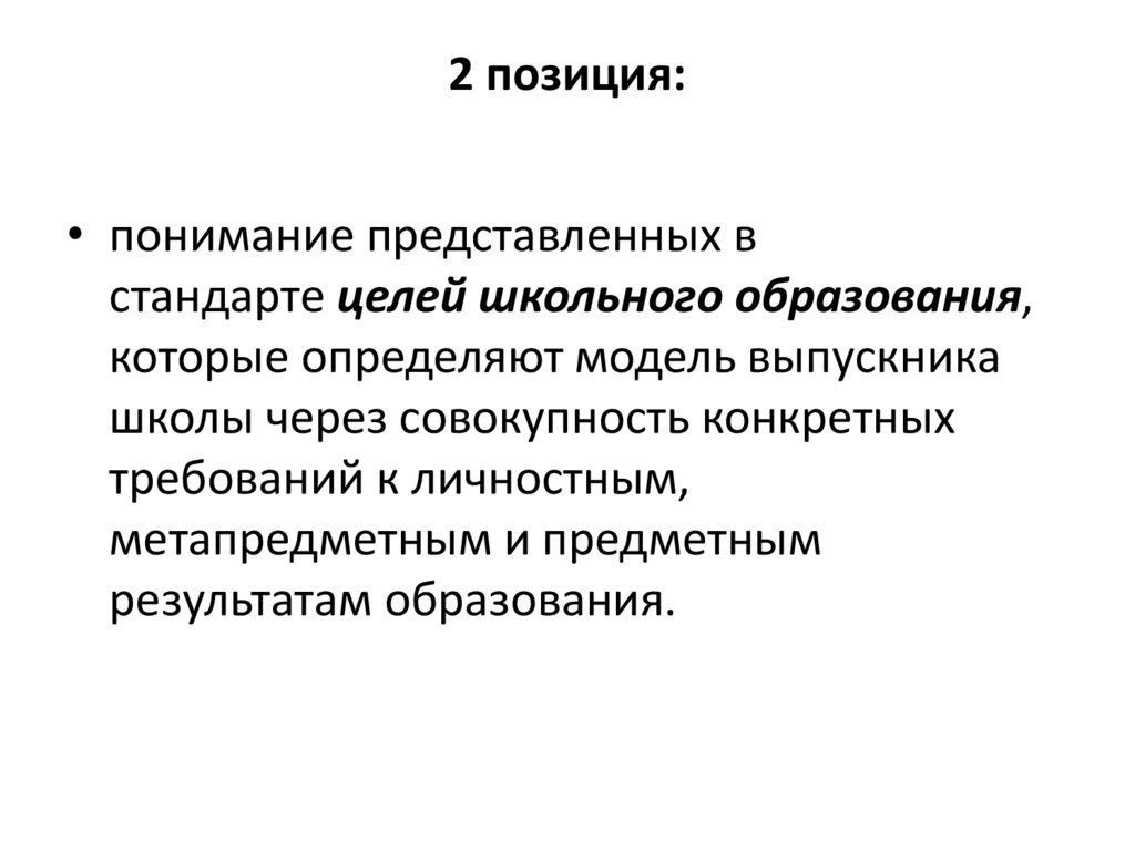 2 позиция:• понимание представленных в