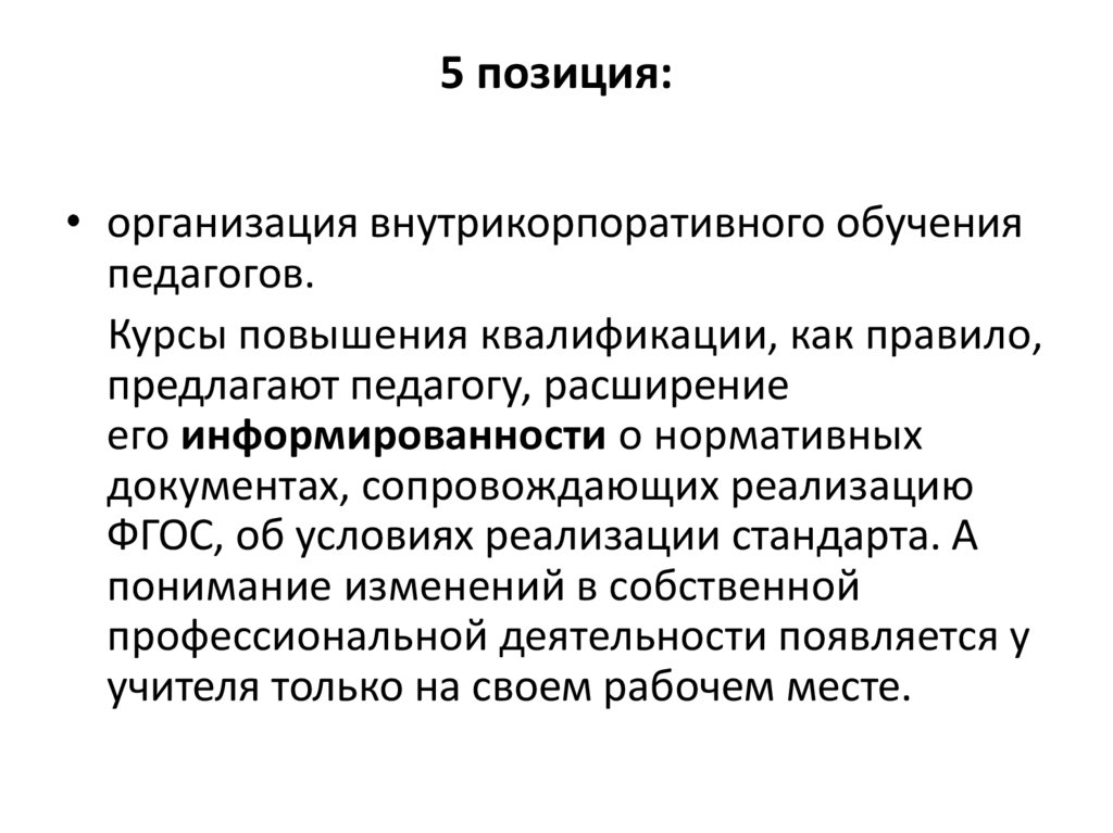 5 позиция:• организация внутрикорпоративного обучения