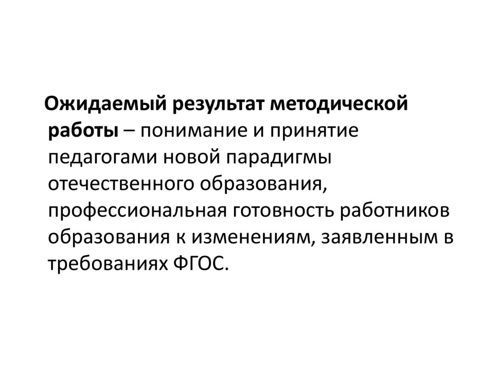 Ожидаемый результат методическойработы – понимание и принятие
