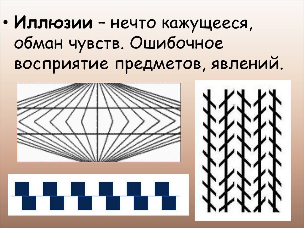 • Иллюзии – нечто кажущееся,обман чувств. Ошибочное