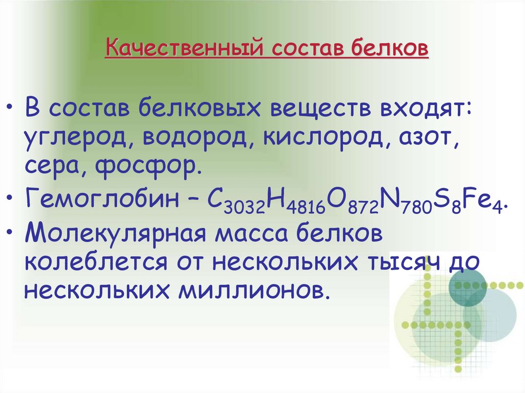 • Гемоглобин – C3032H4816O872N780S8Fe4.